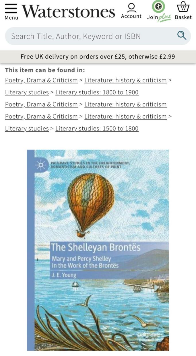 The Shelleyan Brontes, J.E. Young. Palgrave Studies in the Enlightenment & Cultures of Print.